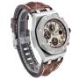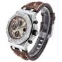 Replica Audemars Piguet Royal Oak Offshore Safari Steel Mens Watch 26470ST. Automatic self-winding chronograph movement. Stainless steel octagonal case 42.0 mm in diameter. Transparent exhibition sapphire crystal caseback. Two pushers operate the chronograph function. Audemars Piguet logo on the black ceramic-outlined crown. Stainless steel bezel punctuated with 8 signature screws. Scratch resistant glareproof sapphire crystal with interior cyclops magnifer. Ivory dial with "Mega Tapisserie", waffle pattern with applied steel rimmed Arabic numeral hour markers with brown luminescent fill. Steel-outlined brown luminescent-filled royal oak baton hands. Date calendar window at the 3 o'clock aperture. Tachymeter scale around the black inner bezel. Three brown chronograph subdials - running small seconds, 30 minutes and 12 hour registers. Brown "Hornback" crocodile strap outlined in white stitching with a stainless steel tang buckle.