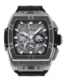 Hublot Spirit of Big Bang Chronograph Skeleton Dial Rubber Strap Men's Watch Model 642.NX.0170.RX. Polished Titanium case with Black Structured Lined Rubber strap. Titanium Deployment clasp. Fixed with 6 H-Shaped Titanium Screws bezel. Dial description: Silver tone Hands and Index Hour Markers with Minute Markers around the outer rim and the Date displayed between the 4 and 5 o'clock position with 3 Sub dials on Skeleton dial. Automatic movement. Calendar: Date between 4 and 5 o'clock position. Chronograph sub-dials display: Small Seconds, 30 Minute, 12 Hours. Powered by Hublot Caliber HUB4700 engine with 50 hours power reserve. Watch functions: Date, Power Reserve, Hour, Minute, Second. Scratch Resistant Sapphire crystal. Tonneau case shape. Case size: 42mm. 100 Meters - 330 Feet water resistant. 2 year Watchesuk.uk.com warranty. Also known as model: 642NX0170RX.