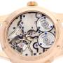 Case: 18K rose gold round case 40.5 mm in diameter. Concave and curved lugs. Transparent sapphire crystal case back