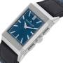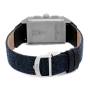 Bracelet: Blue canvas and leather blended strap with a stainless steel deployant clasp.