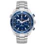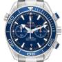 Replica Omega Planet Ocean 600M Titanium Mens Watch 232.90.46.51.03.001. Automatic self-winding chronometer movement with Co-Axial Escapement for greater precision, stability, and durability. Silicon balance spring on free sprung balance, 2 barrels mounted in series, automatic winding in both directions to reduce winding time. Rhodium plated finish with exclusive Geneva waves in arabesque. 60-hour power reserve. Titanium round case 45.5 mm in diameter. Helium escape valve at the 10 o'clock position. Transparent exhibition sapphire crystal caseback. Two pushers operate the chronograph functions. Omega logo on the crown. Blue ceramic unidirectional rotating time-lapse divers' bezel with a Liquidmetal diving scale. Domed, scratch resistant sapphire crystal with anti-reflective treatment on both sides. Blue dial with luminescent broad arrow hands and index hour markers. Two recessed subdials - running small seconds and a 12-hour chronograph register. Orange-tipped central chronograph seconds hand. Date calendar at the 6 o'clock aperture. Outer minute track. Titanium bracelet with a double push-button deployant clasp and divers' extension. Fits an 8.5" wrist.