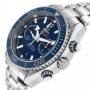 Case: Titanium round case 45.5 mm in diameter. Helium escape valve at the 10 o'clock position. Transparent exhibition sapphire crystal caseback. Two pushers operate the chronograph functions. Omega logo on the crown.