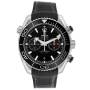 Case: Stainless steel round case 45.5 mm in diameter. Helium Escapement Valve at the 10 o'clock position. Transparent exhibition sapphire crystal case back. Two pushers operate the chronograph functions. Omega logo on the crown.