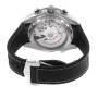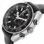 Dial: Black ceramic dial with luminescent baton hour markers and broad arrow hands. Minute and 1/4-second stick markers around the outer rim. Date calendar at the 6 o'clock aperture. Large orange tipped centre second hand. Minute & hour chronograph subdial at 3 o'clock with luminescent orange aluminium hour hand and stainless steel minute hand.