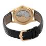 Bracelet: Black leather strap with an 18k yellow gold tang buckle.