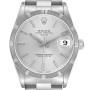 Model Name: Replica Rolex Date Engine Turned Bezel Silver Dial Steel Mens Watch 15210