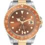 Bezel: 18k yellow gold bidirectional rotating bezel with a special 24-hour brown bezel insert, engraved with the 24-hour graduation scale.