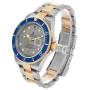 Bezel: Blue insert special time-lapse unidirectional rotating yellow gold bezel.