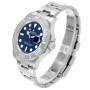 Dial: Blue dial with luminescent dot, baton, and triangle hour markers. Minute markers around the outer rim. Date calendar at the 3 o'clock aperture.