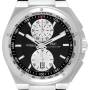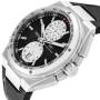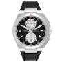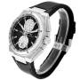 Dial: Black dial with raised hour indices and Arabic numerals on silver subdials at 12 and 6 o’clock. Black chapter ring with tachymeter scale. Chronograph hour and minute counter at 12 o’clock and 6 o’clock. Stationary tachymeter hand at 12 o'clock. Luminous hands and indices. Date aperture at 6 o’clock.