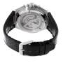 Bracelet: Black leather strap with stainless steel tang buckle.