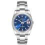 Dial: Blue dial with raised luminous baton hour markers. Date window at 3 o'clock aperture.