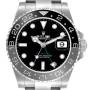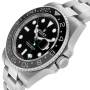 Dial: Black lacquer dial with luminescent dot hour markers and Mercedes hands. Green arrow GMT hand and "GMT Master II" text. Luminescent lollipop-tipped center seconds hand. Date calendar at the 3 o'clock aperture. Outer stick minute markers.