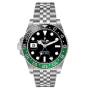 Bezel: Stainless steel bidirectional rotating 24-hour graduated green and black "Sprite" bezel.